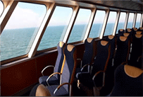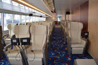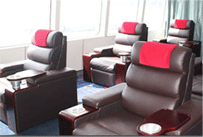 豪華皮質座椅,可電動調節椅背和腿靠的寬敞座椅,根據旅客的需求伸縮自如,每個座位都可以近距離觀賞大海動人景緻。